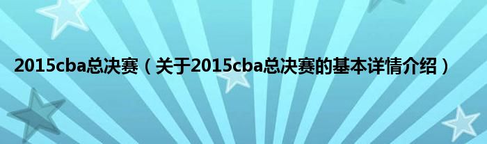 本文关于2015cba总决赛的基本详情介绍就讲解完毕,希望对大家有所帮助。