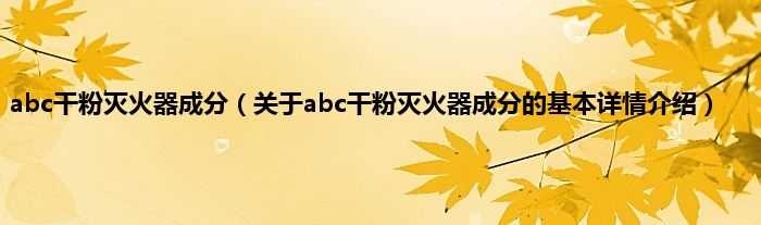本文关于abc干粉灭火器成分的基本详情介绍就讲解完毕,希望对大家有所帮助。