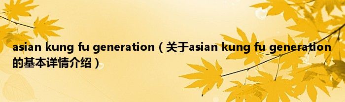 本文关于asian kung fu generation的基本详情介绍就讲解完毕,希望对大家有所帮助。