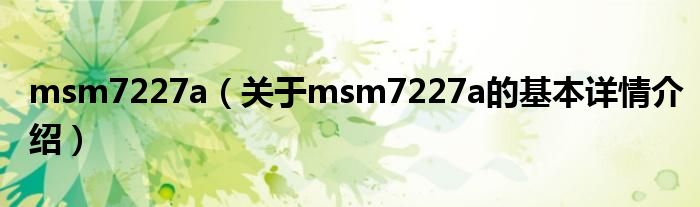 本文关于msm7227a的基本详情介绍就讲解完毕,希望对大家有所帮助。