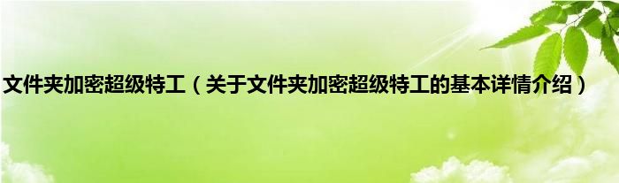 本文关于文件夹加密超级特工的基本详情介绍就讲解完毕,希望对大家有所帮助。