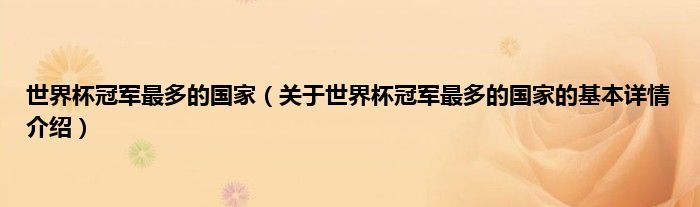 本文关于世界杯冠军最多的国家的基本详情介绍就讲解完毕,希望对大家有所帮助。