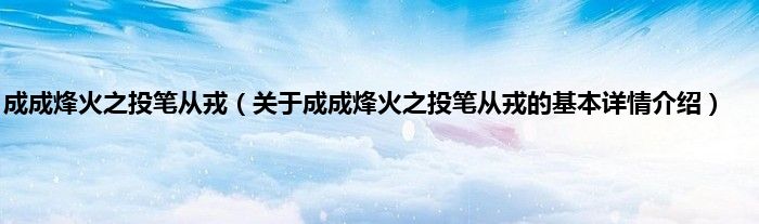 本文关于成成烽火之投笔从戎的基本详情介绍就讲解完毕,希望对大家有所帮助。