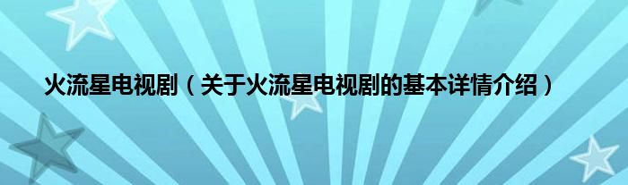 本文关于火流星电视剧的基本详情介绍就讲解完毕,希望对大家有所帮助。
