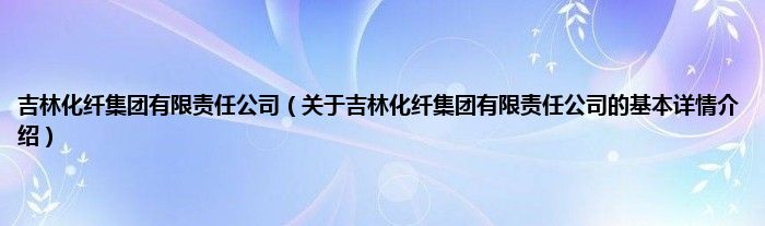 本文关于吉林化纤集团有限责任公司的基本详情介绍就讲解完毕,希望对大家有所帮助。