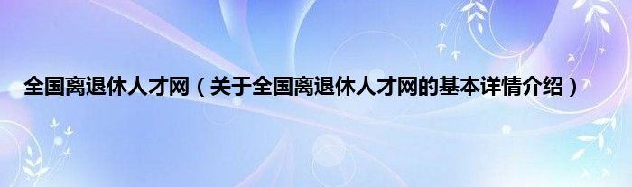 本文关于全国离退休人才网的基本详情介绍就讲解完毕,希望对大家有所帮助。