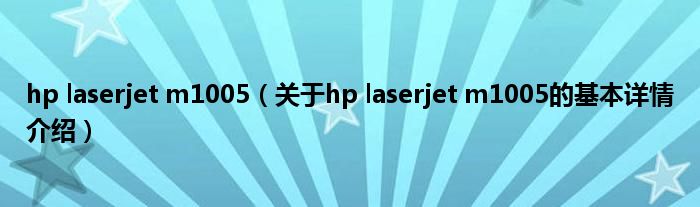 本文关于hp laserjet m1005的基本详情介绍就讲解完毕,希望对大家有所帮助。