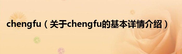 本文关于chengfu的基本详情介绍就讲解完毕,希望对大家有所帮助。