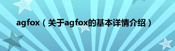 本文关于agfox的基本详情介绍就讲解完毕,希望对大家有所帮助。