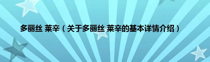 本文关于多丽丝 莱辛的基本详情介绍就讲解完毕,希望对大家有所帮助。