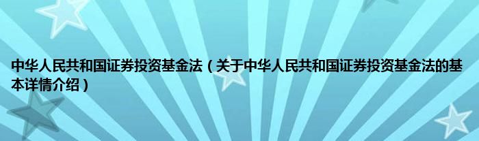 本文关于中华人民共和国证券投资基金法的基本详情介绍就讲解完毕,希望对大家有所帮助。