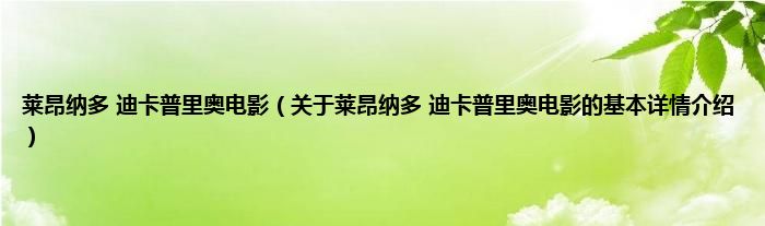 本文关于莱昂纳多 迪卡普里奥电影的基本详情介绍就讲解完毕,希望对大家有所帮助。