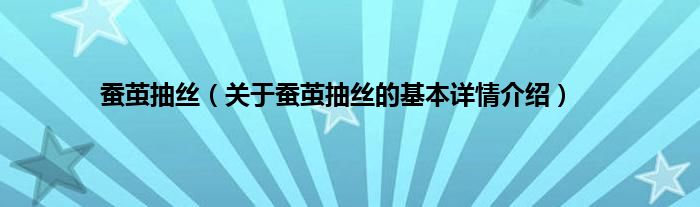 本文关于蚕茧抽丝的基本详情介绍就讲解完毕,希望对大家有所帮助。