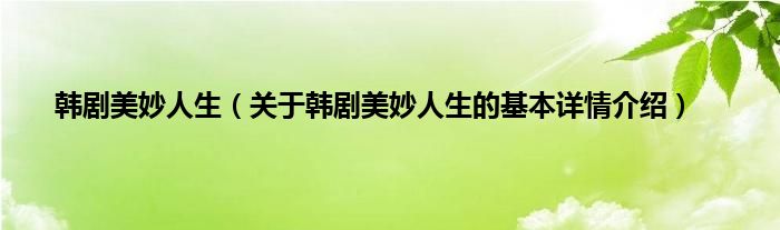 韩剧美妙人生(关于韩剧美妙人生的基本详情介绍)