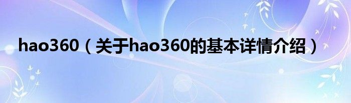 本文关于hao360的基本详情介绍就讲解完毕,希望对大家有所帮助。