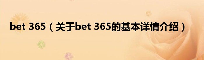 本文关于bet 365的基本详情介绍就讲解完毕,希望对大家有所帮助。