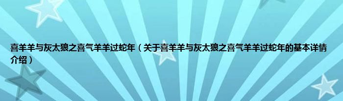 本文关于喜羊羊与灰太狼之喜气羊羊过蛇年的基本详情介绍就讲解完毕,希望对大家有所帮助。