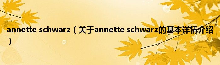本文关于annette schwarz的基本详情介绍就讲解完毕,希望对大家有所帮助。