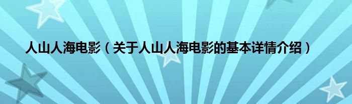 本文关于人山人海电影的基本详情介绍就讲解完毕,希望对大家有所帮助。