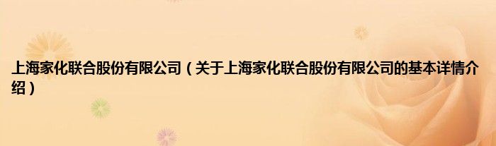 本文关于上海家化联合股份有限公司的基本详情介绍就讲解完毕,希望对大家有所帮助。