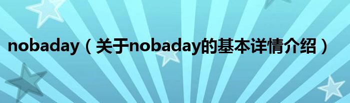 本文关于nobaday的基本详情介绍就讲解完毕,希望对大家有所帮助。