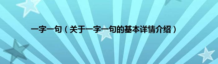 本文关于一字一句的基本详情介绍就讲解完毕,希望对大家有所帮助。
