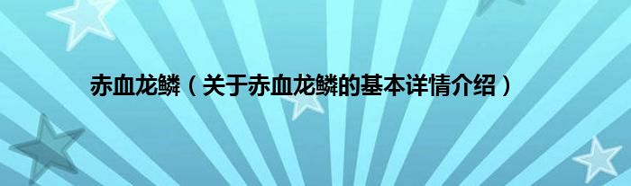 大家好我是小蝌蚪,赤血龙鳞,关于赤血龙鳞的基本详情介绍很多人还不知道,那么现在让我们一起来看看吧!