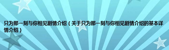 本文关于只为那一刻与你相见剧情介绍的基本详情介绍就讲解完毕,希望对大家有所帮助。