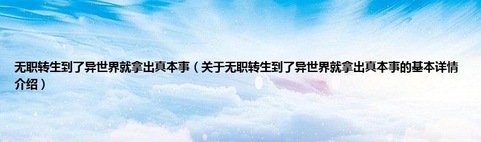 本文关于无职转生到了异世界就拿出真本事的基本详情介绍就讲解完毕,希望对大家有所帮助。