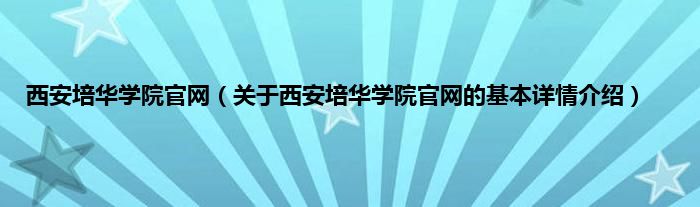 本文关于西安培华学院官网的基本详情介绍就讲解完毕,希望对大家有所帮助。
