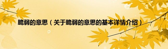 本文关于脆弱的意思的基本详情介绍就讲解完毕,希望对大家有所帮助。