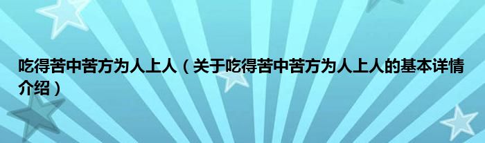 本文关于吃得苦中苦方为人上人的基本详情介绍就讲解完毕,希望对大家有所帮助。