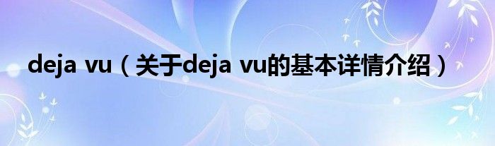 本文关于deja vu的基本详情介绍就讲解完毕,希望对大家有所帮助。