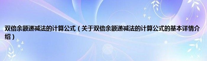 本文关于双倍余额递减法的计算公式的基本详情介绍就讲解完毕,希望对大家有所帮助。