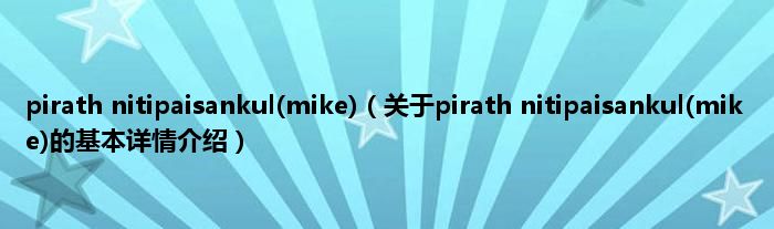 本文关于pirath nitipaisankul(mike)的基本详情介绍就讲解完毕,希望对大家有所帮助。