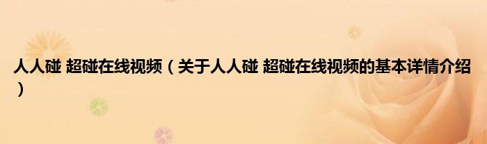 本文关于人人碰 超碰在线视频的基本详情介绍就讲解完毕,希望对大家有所帮助。