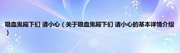本文关于吸血鬼殿下们 请小心的基本详情介绍就讲解完毕,希望对大家有所帮助。