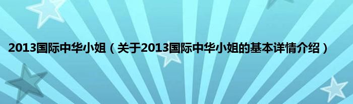 本文关于2013国际中华小姐的基本详情介绍就讲解完毕,希望对大家有所帮助。