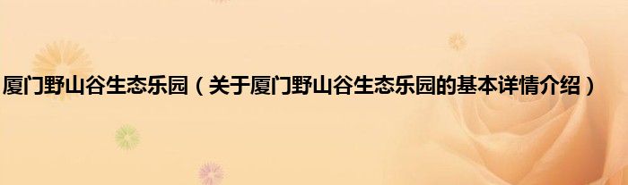 本文关于厦门野山谷生态乐园的基本详情介绍就讲解完毕,希望对大家有所帮助。