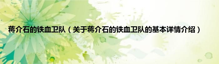 蒋介石的铁血卫队(关于蒋介石的铁血卫队的基本详情介绍)