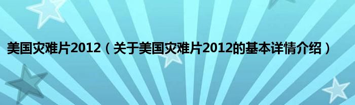 本文关于美国灾难片2012的基本详情介绍就讲解完毕,希望对大家有所帮助。