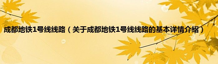 本文关于成都地铁1号线线路的基本详情介绍就讲解完毕,希望对大家有所帮助。