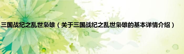 三国战纪之乱世枭雄(关于三国战纪之乱世枭雄的基本详情介绍)