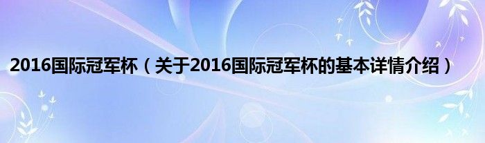 本文关于2016国际冠军杯的基本详情介绍就讲解完毕,希望对大家有所帮助。