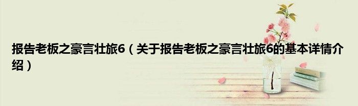 本文关于报告老板之豪言壮旅6的基本详情介绍就讲解完毕,希望对大家有所帮助。