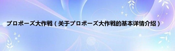 本文关于プロポーズ大作戦的基本详情介绍就讲解完毕,希望对大家有所帮助。