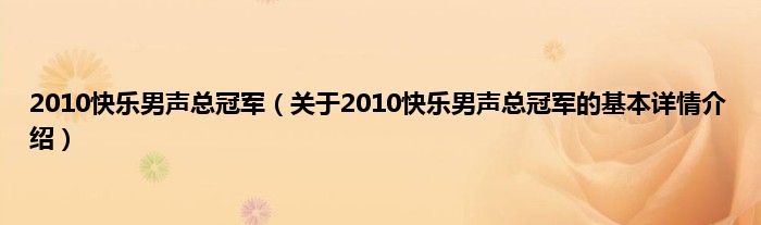 本文关于2010快乐男声总冠军的基本详情介绍就讲解完毕,希望对大家有所帮助。