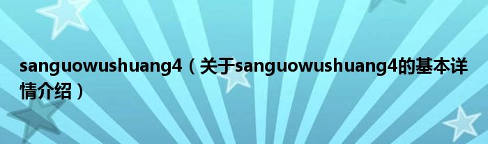 本文关于sanguowushuang4的基本详情介绍就讲解完毕,希望对大家有所帮助。
