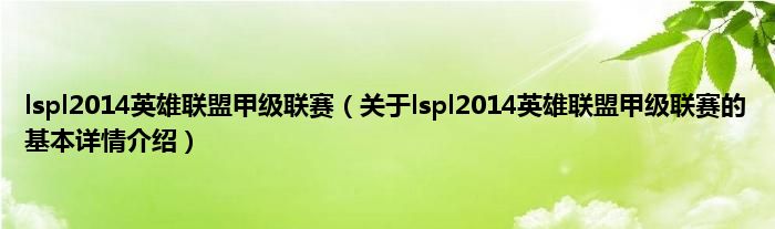 本文关于lspl2014英雄联盟甲级联赛的基本详情介绍就讲解完毕,希望对大家有所帮助。