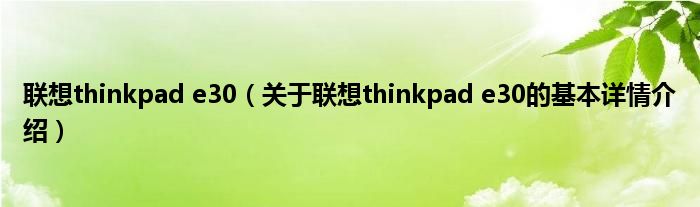 本文关于联想thinkpad e30的基本详情介绍就讲解完毕,希望对大家有所帮助。